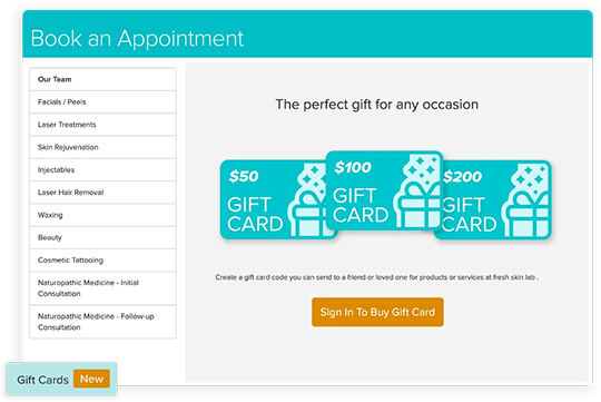 Sell your services in a way that works best for you and your patients. With auto-recurring Memberships and Online Gift Cards, payments roll in without the extra effort.