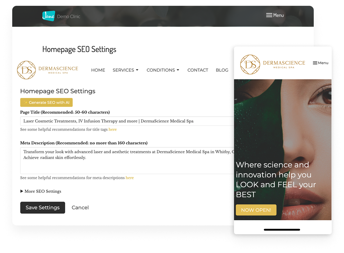 Simple to create for you, and helpful for your current (and future) clients, Jane Websites has your clinic’s back.