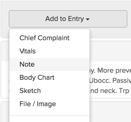 Modular charting is a great way of working efficiently. You can add chart pieces in as needed or you can delete off parts that you don’t need if you’re using a template. It can also be helpful to create templates in the same way. Start with a basic subsequent visit template and then add on an entire template for specific charting needs (say orthotics for example). Hover over any extraneous pieces and use the “trash can” to delete it, or just add on a single charting piece (such as a final extra “note” field) using the “add to entry” button at the bottom.