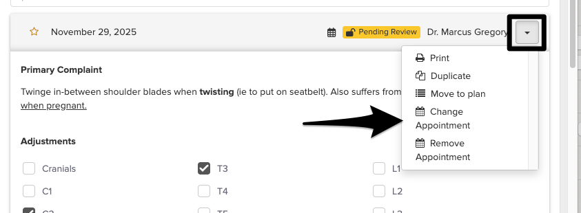 To change the appointment you’ve connected to a chart, click the arrow and select Change appointment.
