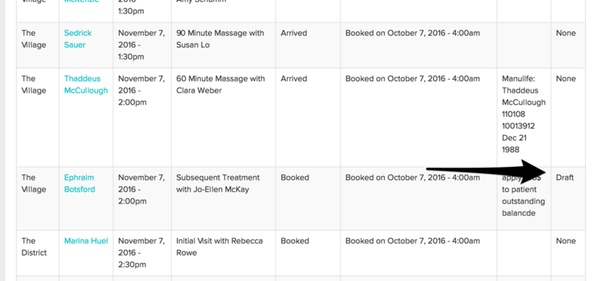 It can be filtered by date range and by practitioner and to search for appointments with just draft charts or no chart entries at all.