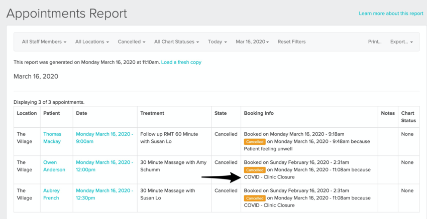We’re hearing many questions about how to best cancel in-person appointments and record the reason for these cancellations.