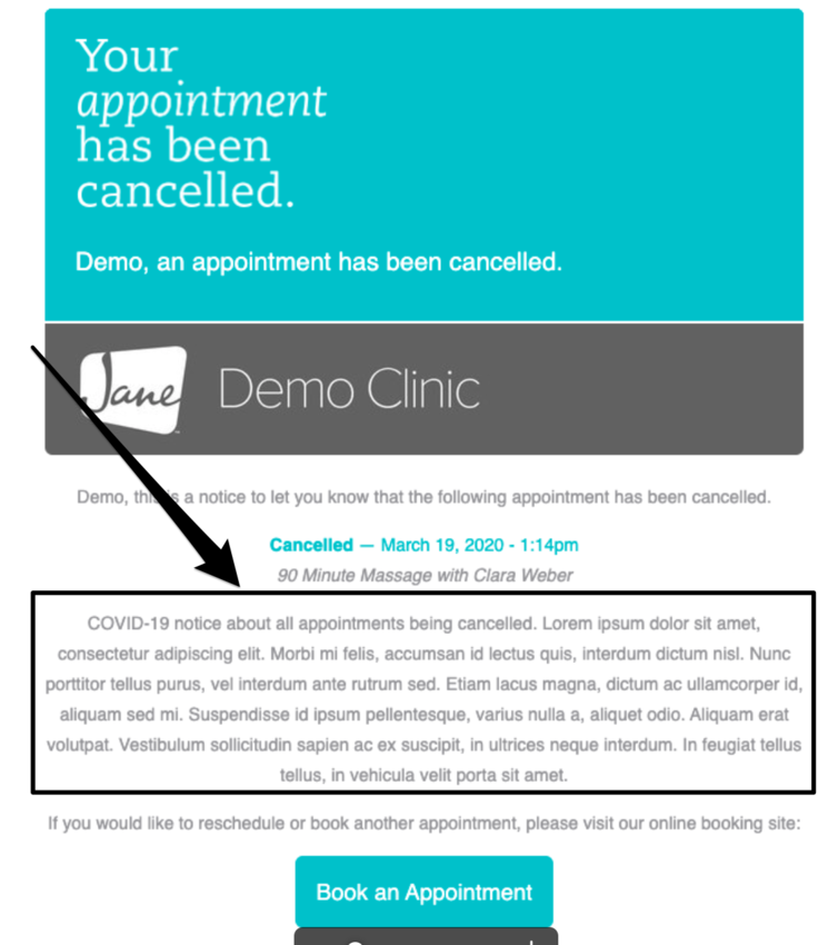 You can now add a custom message into the Cancellation notification that will be included in the body of every email you send out.