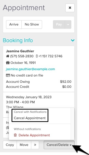 If you need to cancel appointments and would like to send out a notification email you can do so by opening the appointment pane and choosing Cancel/Delete. Then choose the “Cancel with Notification” option: