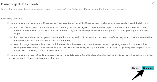 After saving your changes, you’ll need to re-accept Stripe’s terms of service for your new account type.