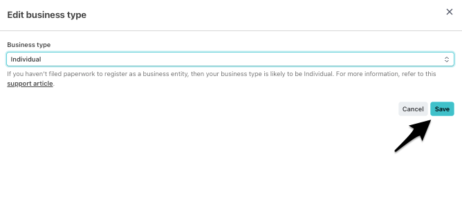Jane Payments is powered by Stripe, our partner in payments. So if you ever need to switch your Jane Payments account type from an Individual to a Business account, or the other way around, you can do that directly in your Stripe Dashboard. This is where you can safely update important details like your business type (see steps below), banking information, or verification documents.