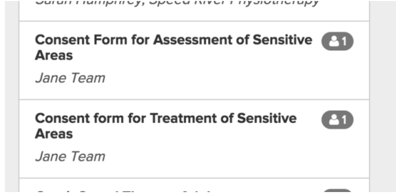 They’re called Consent Form for Assessment/Treatment of Sensitive Areas