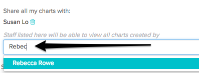Once you’ve decided on your basic level of access, you can also add on individuals with whom you’d like to also share chart notes. Scroll down a bit more to “Share all my charts with:” and start typing in the name of the person you want to share with: