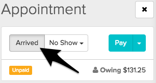 Once the visit is unpaid, you can unarrive the appointment by clicking “Arrived” a second time.