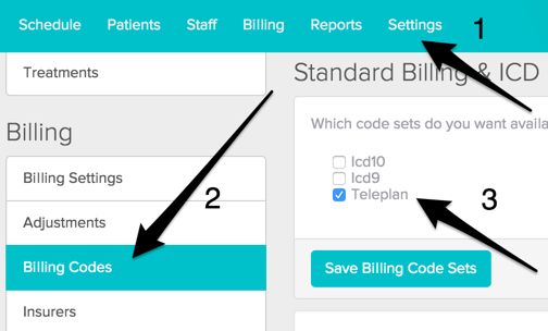 You can find the Teleplan Codes in the Billing Codes area of the Settings Tab. The Teleplan Directory includes the Fee Codes and the Diagnosis Codes so you do not need to enable either of the ICD directories.