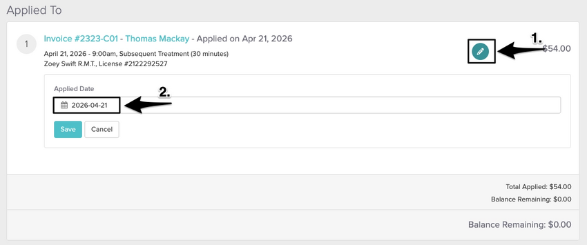 - If an insurer payment was processed by credit card through Jane Payments, the Received At date is locked and cannot be edited.