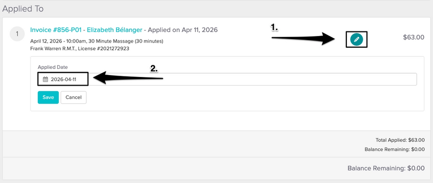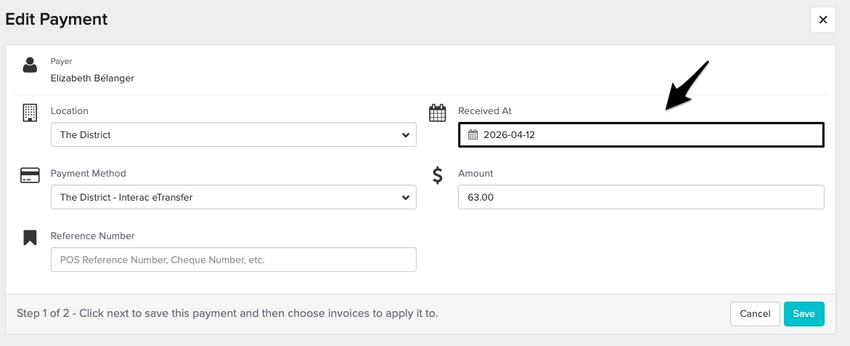 📣 Heads up: If the payment was made through Jane Payments, the Received At date cannot be edited. The date is locked to match the actual charge date on the patient’s bank statement.
