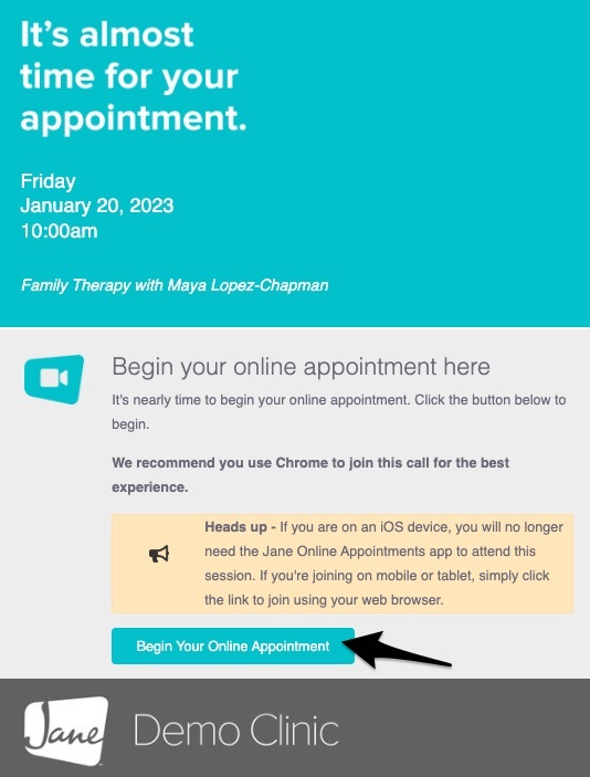 💡For your security and privacy, Jane’s Online Appointments are not designed to record or store audio or video.