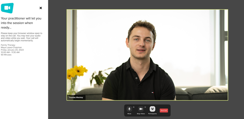 This will start the call in a separate window, and you will enter a private waiting area. If your practitioner has already joined the call, they’ll admit you as soon as they’re ready.