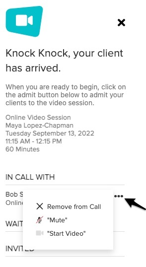 Once your clients have joined the call, you’ll have the ability to manage a few of your settings by clicking the three horizontal dots beside their name: