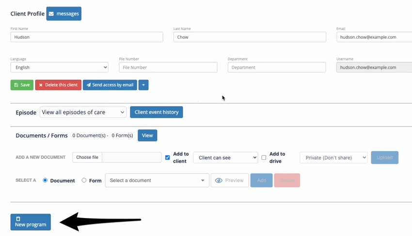 Now you can create a home exercise plan in Wibbi by clicking New program underneath the patient details on this page.