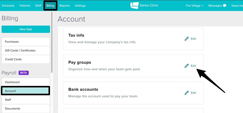 Almost done! Head to Billing > Payroll > Account and select Edit next to Pay groups.