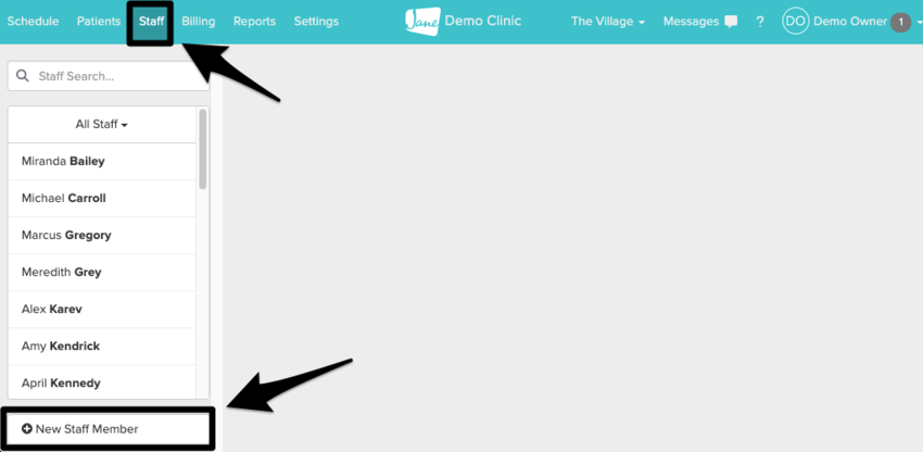 If you’re onboarding a new staff member who doesn’t have a profile in Jane yet, start by creating one in Staff > New Staff Member.