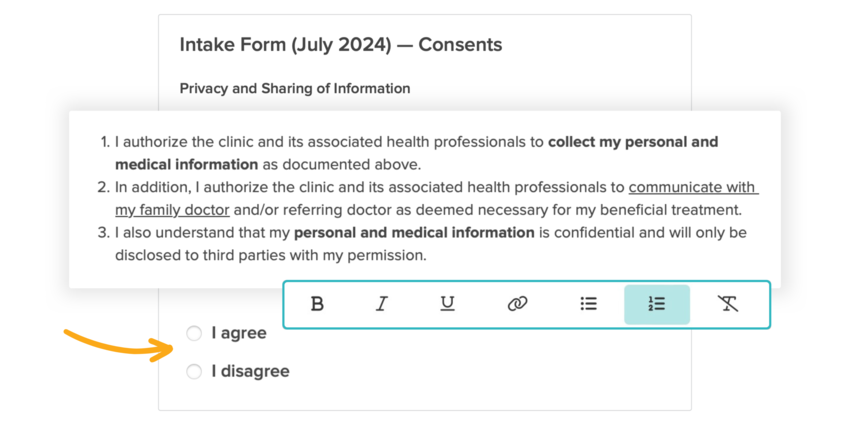 We’ve added additional acknowledgment types, which let you choose what kind of response to collect from your patients before they complete their forms. You can now choose from three options: