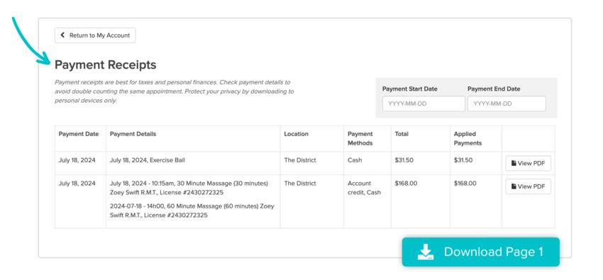To reduce the requests coming from your patients to re-send their receipts, patients can now view and download their receipts whenever they need them — right from their patient portal!