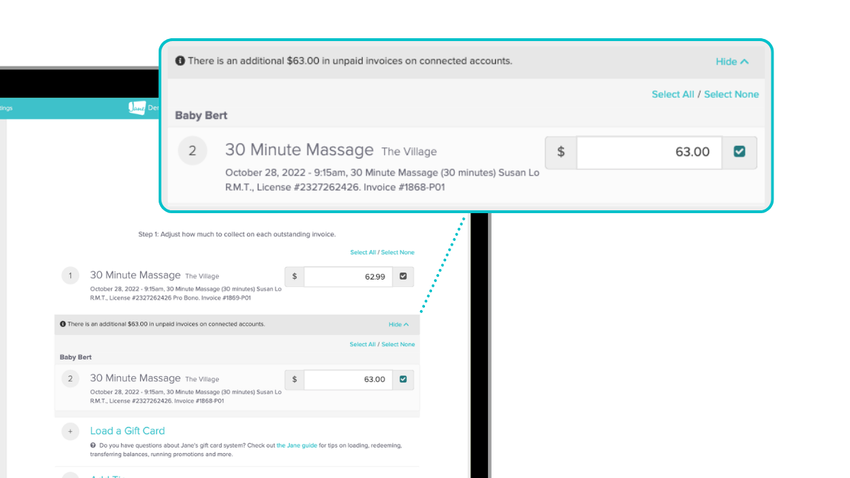 Things get busy around the holidays, so to save time, clients can now pay for their own invoices and those of a family member in one transaction. Also, when a client pays for their child’s invoice, for example, the parent is listed as the payer. This feature speeds up the checkout process and makes invoices more accurate, just in time for the busiest month of the year.