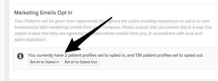 If you already have permission granted from your customers to opt-in to marketing emails, you can opt-in your customers in bulk in Settings > Online Booking. Just be sure that you’re staying in compliance with your local anti-spam legislation!