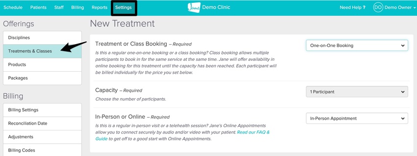 Now that we have your Disciplines all set up, the next thing we’ll have to do is let Jane know what types of sessions we offer under that particular category.