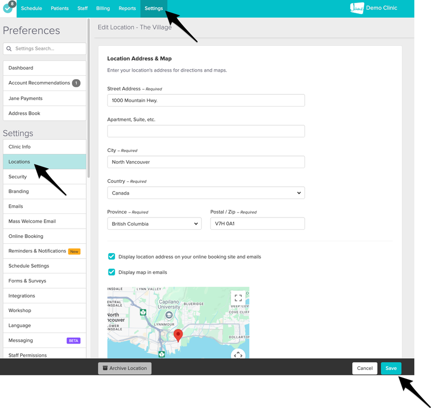 If your clinic is located in one of our supported geographies (Squamish and Vancouver’s North Shore, B.C.), you’ll be able to utilize Jane’s Practitioner Search! If one of the locations of your business is outside of our supported geographies, you’ll still be able to enable the feature in your practice, but patients in that geography won’t be able to make use of Jane’s Practitioner Search until we’re able to support that area.