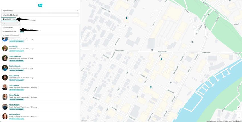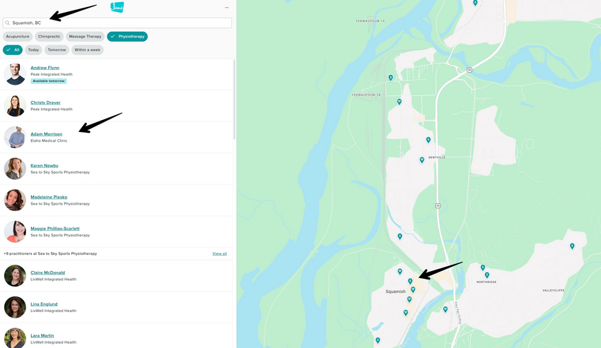 We’ve been offering Practitioner Search as a pilot since June 2025, starting with clinics in Squamish, B.C. that provide chiropractic care, massage therapy, physiotherapy, or acupuncture. Right now, it’s available for those in these supported disciplines and locations.