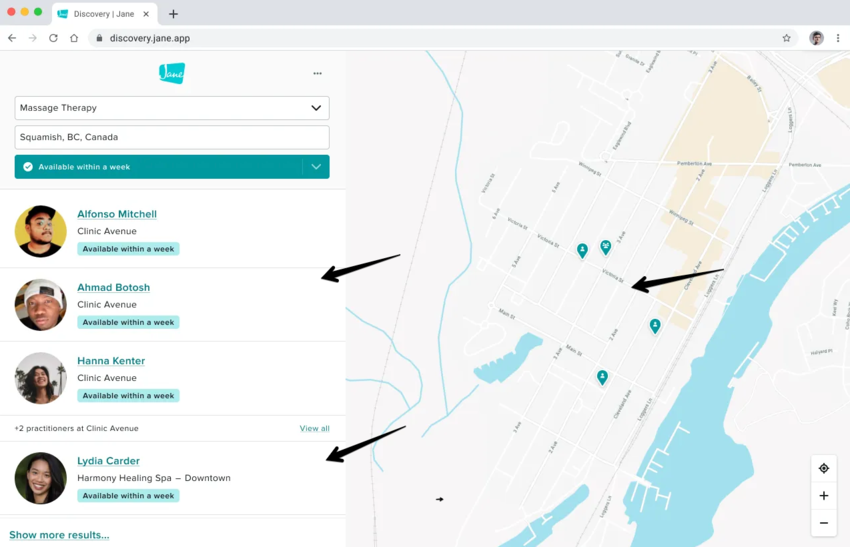 You may also be curious as to why Jane is building a Practitioner Search product. At Jane, our mission is to help the helpers. The Practitioner Search is one way we hope to connect allied health practitioners with more people in their communities, making care easier to access and helping you stay as busy as you’d like. If you want to learn more about the thinking behind this new pilot, what we’re testing in Squamish, and why we’re taking a slow and careful approach, you can read insights from our Co-Founder Ali here.