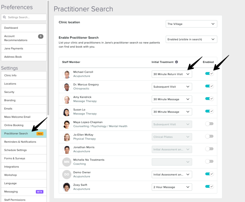 - your clinic has been opted into Jane’s Practitioner Search beta;