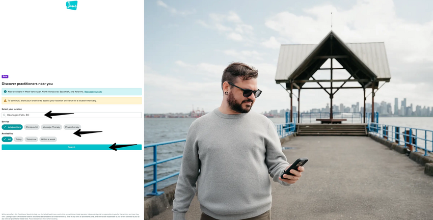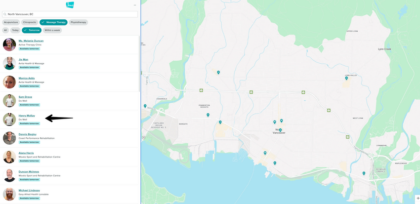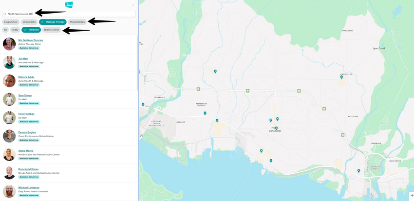 At the moment you will only be able to filter for Chiropractors, Acupuncturists, Massage Therapists & Physical Therapists found in Squamish, Vancouver’s North Shore, and the Okanagan Valley, all found in B.C., Canada. We have plans to continue expanding in the future - keep your eyes peeled!