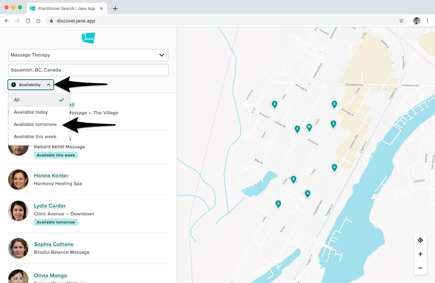 Welcome to our guide on Jane’s practitioner search: a way for you to find last-minute openings to appointments within your immediate area, cutting out the hassle of calling & searching for multiple clinics.