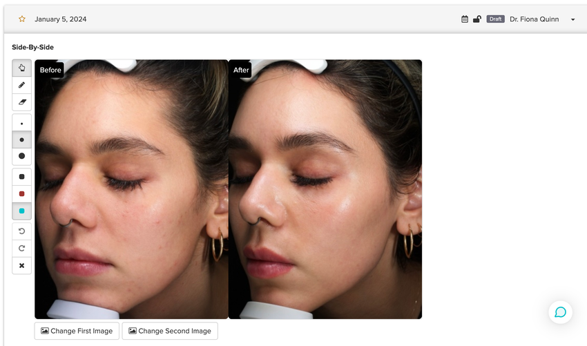 Our new Side-by-Side Photos Chart Part allows you to upload two photos for easy comparison in a client’s chart. Some common use cases for aesthetic clinics include treatment progression, before and afters, tracking reactions, and evaluating symmetry.