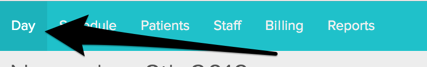 The best place for you to chart from is your “Day” view that shows up in the very top left of your screen. You’ll get a sort of one day “daysheet” view that gives you single click access to your patient charts.