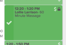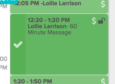 The Day View helps you stay on top of documenting your appointments. You can keep tabs on your schedule and easily see which appointments have session notes or treatment notes attached. The lock and unlock icons only show up in this view, so you can quickly see your charting progress. Administrative staff won’t see these chart indicators as this view is just for practitioners to track their own appointments and charting status.
