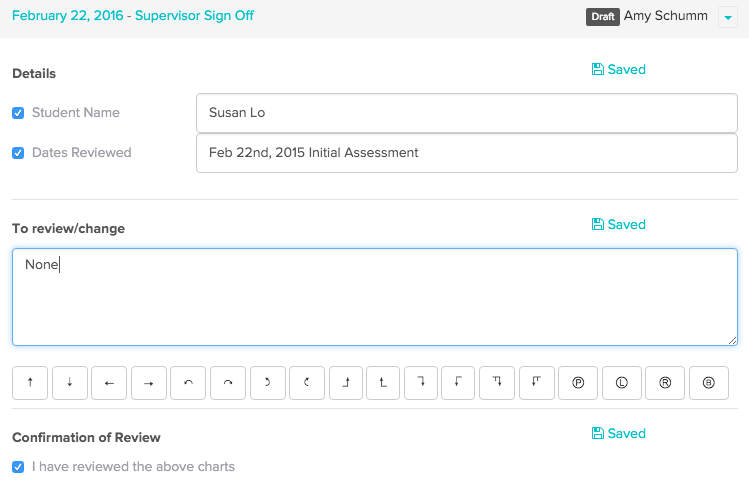 Next, the ball is in the Supervisor’s court. The Supervising Practitioner can then add their separate “Supervisor Sign off” chart to the client’s charting area, and make any notes as necessary.
