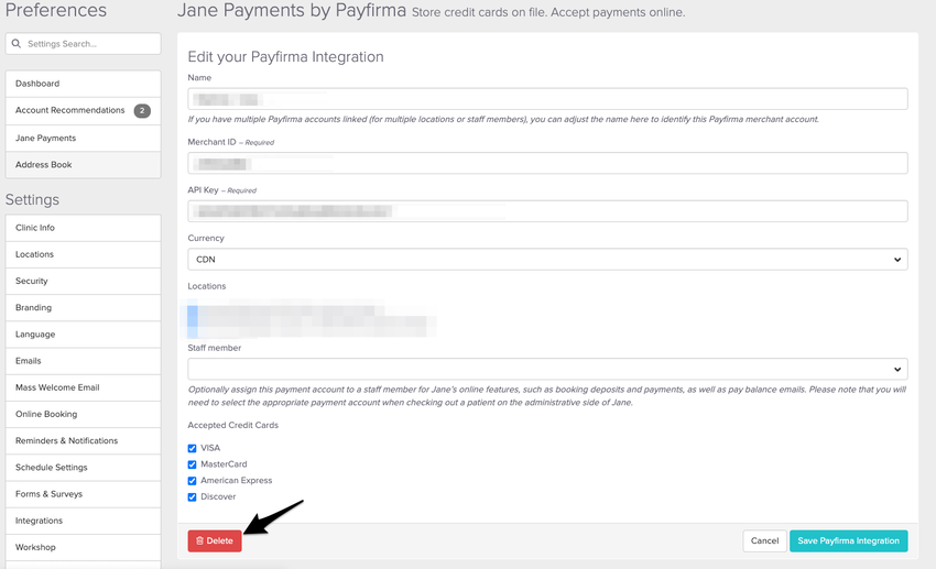 When Payfirma is still connected, Jane can’t reliably tell whether a new card should be saved to Payfirma or Jane Payments. This can lead to cards being saved in the wrong place. Removing the Payfirma integration ensures all new cards are stored securely in Jane Payments.