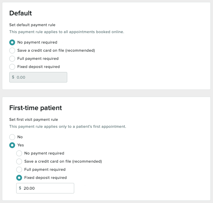 📍 These settings define your clinic-wide preferences but can be customized for individual patients as needed. To learn more about these options, take a look at our guide on Online Booking: Choosing what is Offered Online.