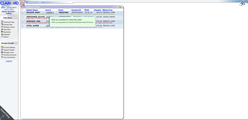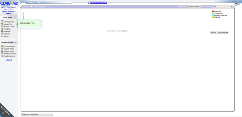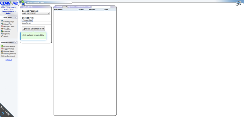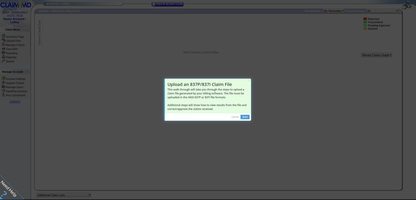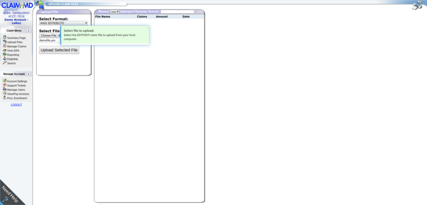 Claim.MD has a super handy Need Help? button found at the bottom left of your account, where you can access a walk through of each step to uploading an EDI file. 🙌