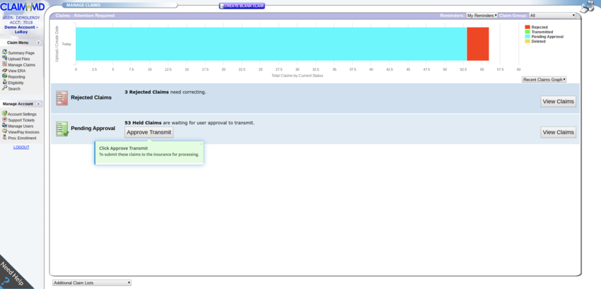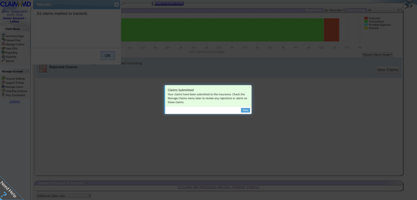 Your claims are now submitted! You can check the Manage Claims menu later on to review any rejections or alerts on these claims.