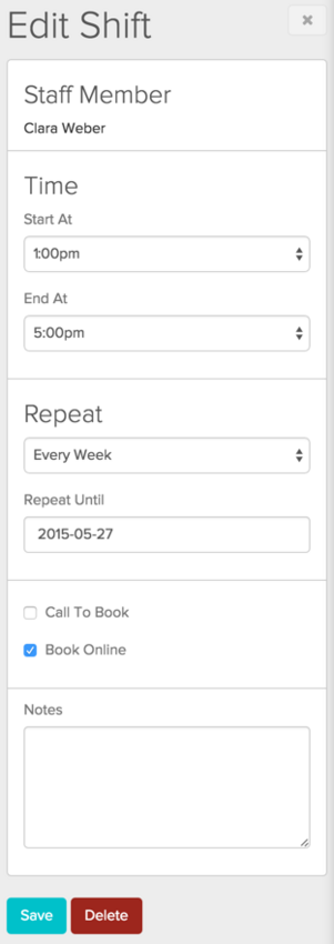 Within the Edit Shift pane, you can set the following attributes: