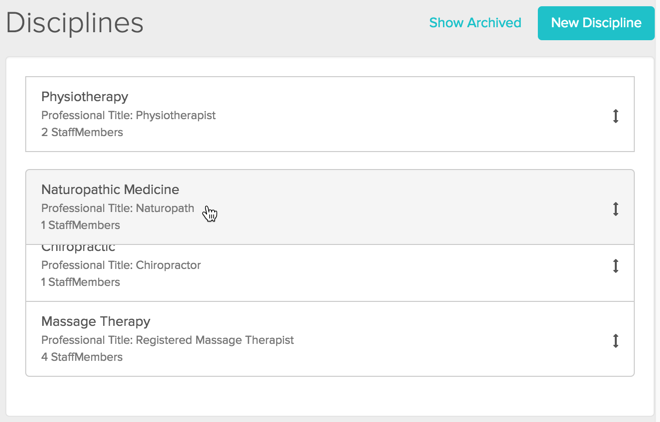 Full Access users can rearrange the order in which the disciplines are displayed in the Schedule or Calendar.